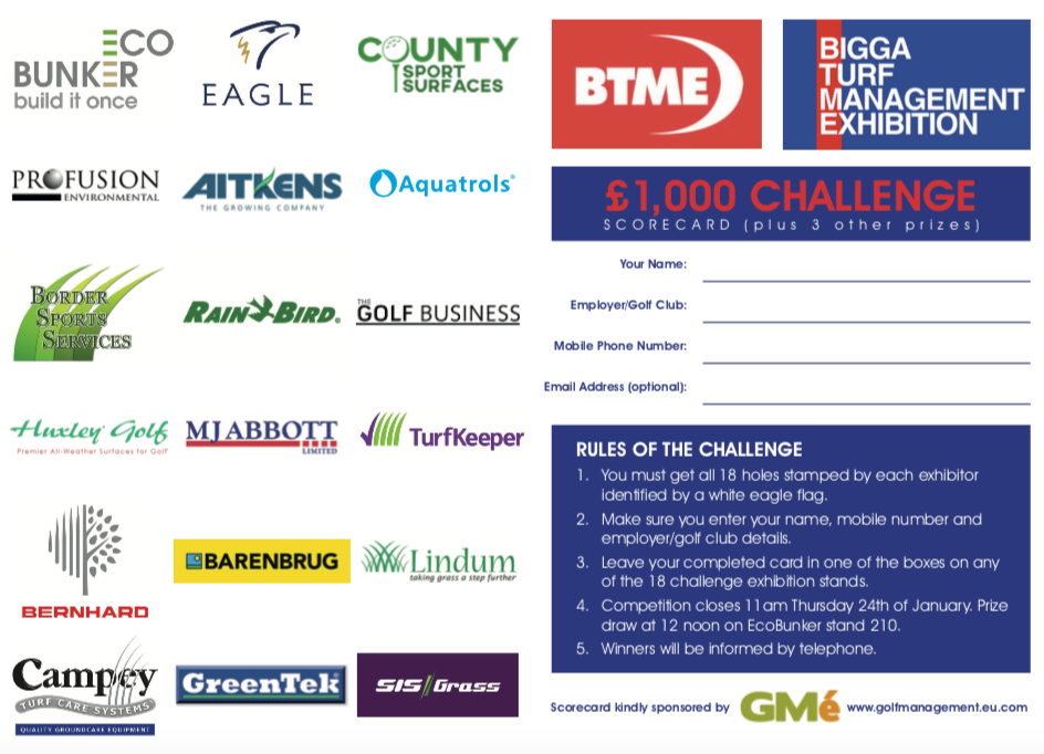 Eighteen exhibitors including The Golf Business and EcoBunker are running a ‘scorecard challenge’ at BTME in Harrogate next week.