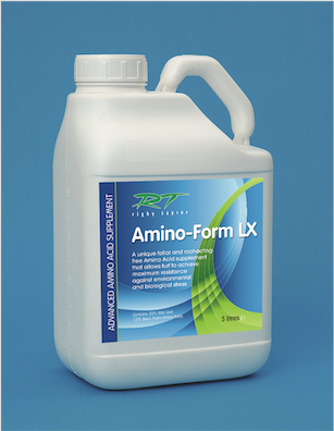 By applying such nutrient together with an amino-based supplement such as Rigby Taylor’s liquid Amino-Form LX, they will be more ‘recognisable’ to the plant and readily absorbed by both roots and leaves. The biological active L-form amino acid present in Amino-Form LX combats such stress related reactions by preventing stomatal closure, increasing photosynthesis and nutrient consumption and regulating osmotic pressure.