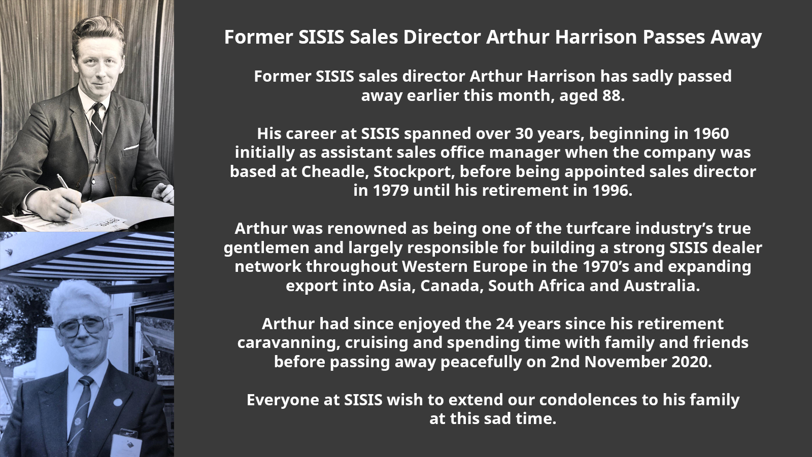 Former SISIS sales director Arthur Harrison has sadly passed away, aged 88.