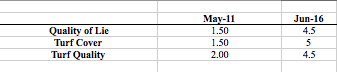 In summer 2016, after four years of using fairway irrigation, the same sample areas on the fairways were reassessed and the results compared.