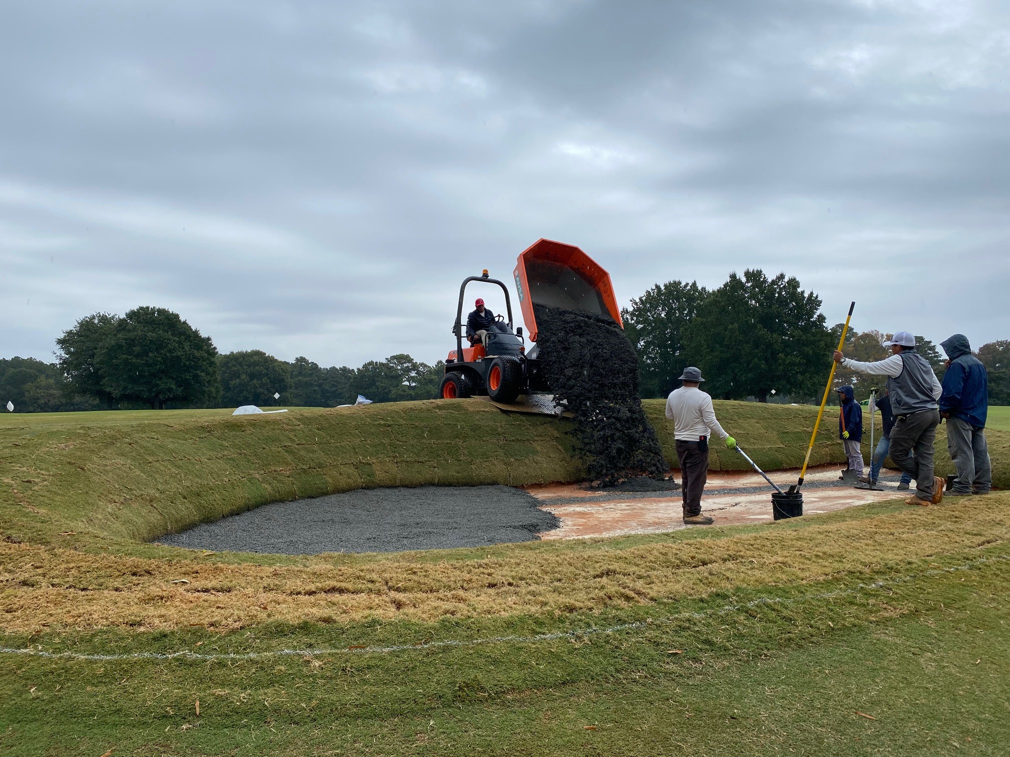Wharton chose to use the Capillary Bunkers liner system to seal off the clay. He made contact with the company’s regional distributor, Ewing Irrigation, and with local contractor Golf Course Services of North Carolina, whose owner, JD Downey, had been an associate of architect Spence during the 2008 restoration.