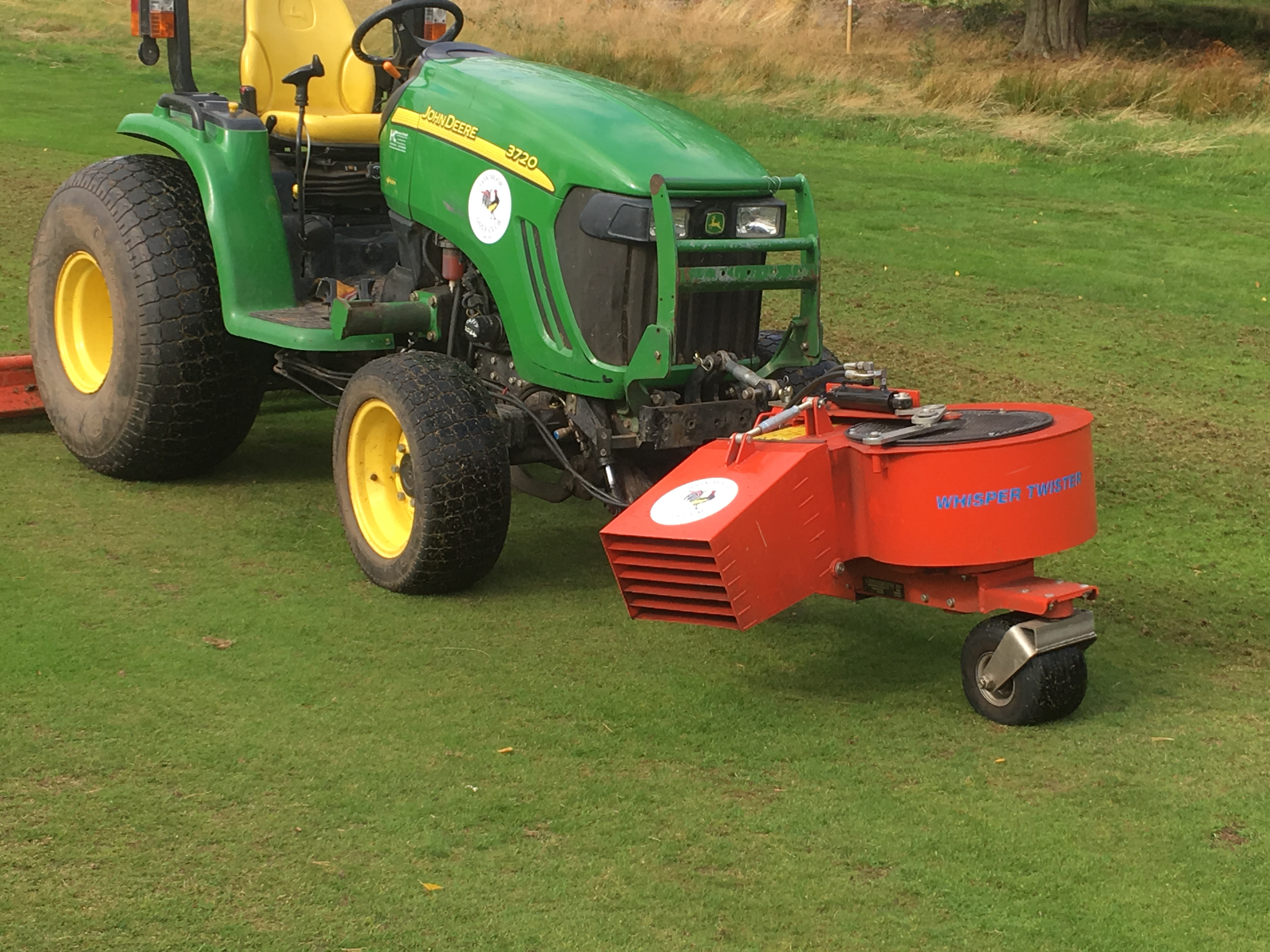 “It’s fortunate the John Deere has low ground pressure and Galaxy flotation tyres so it can be over the greens for most of the year, leaving no imprint whatsoever. The Whisper Twister balances on a low pressure wheel so together they are perfect for fine turf. When it’s dry, the blower goes round the greens that need it in the morning to tidy them. We drive right up to a bunker, point the nozzle, rotate if required and the leaves are taken out easily. Because the driver’s view is to the front, you see everything; no awkward neck twisting trying to look behind,” continued Ben Cumberland.