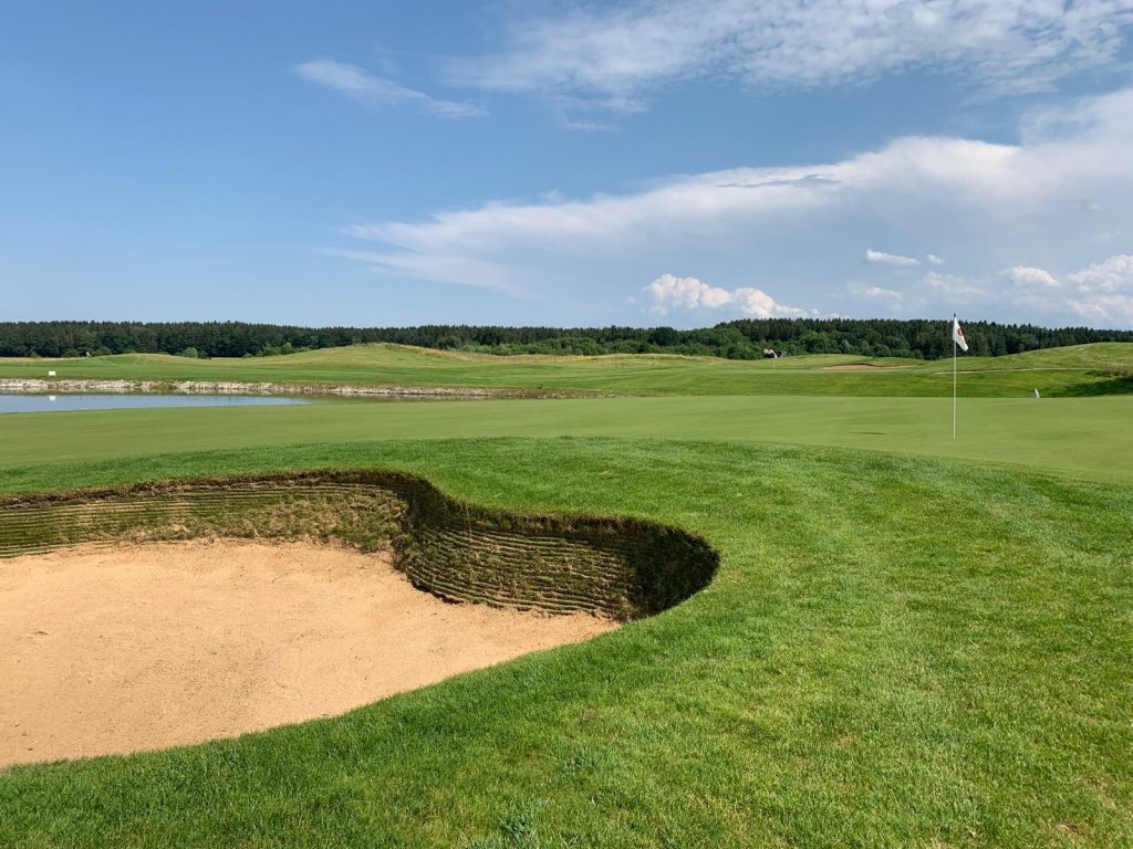 That project, in spring 2018, was handled by EcoBunker construction manager Llewelyn Matthews. Covering thirteen bunkers, Matzner and the Golf Valley team were impressed by the results. “A revetted wall in sunlight and shadow looks very impressive,” he says. “But the most important thing was the prevention of washouts. A flat sandy bunker never washes out. It may fill up but so long as the drain operates effectively, the bunker will always work.”