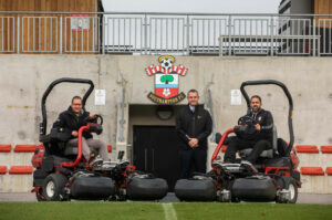 Southampton Football Club, nicknamed The Saints, is the first club in the Premiership to invest in Toro’s all-electric Greensmaster eTriFlex 3370 riding mower. It has purchased two, has plans to order two more – and according to head groundsman Graeme Mills – it won’t be long until other clubs follow suit.