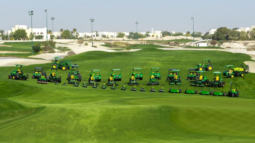 The new fleet includes compact tractors, mowers, and two HD200 sprayers on ProGators. While the purchase was driven by the golf course, the machinery will also support the wider operation, which includes maintaining the nearby horse racing track and landscaping around 1,000 villas that neighbour the club.