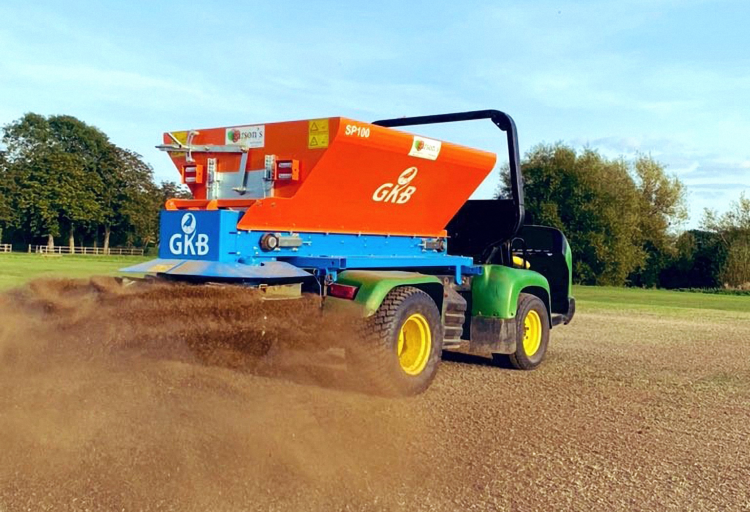 To support its rapid and continued growth, Garsons Group has been investing in equipment to help it deliver contracting and maintenance services to the full spectrum of sports surfaces. One machine that joined the fleet and has now become their ‘go-to’ for topdressing is the GKB Sandspreader – and while perhaps it wasn’t quite ‘love’ at first sight, director Gareth Davies says it was definitely ‘the perfect fit’ at first sight after spotting the SP100 at BTME.