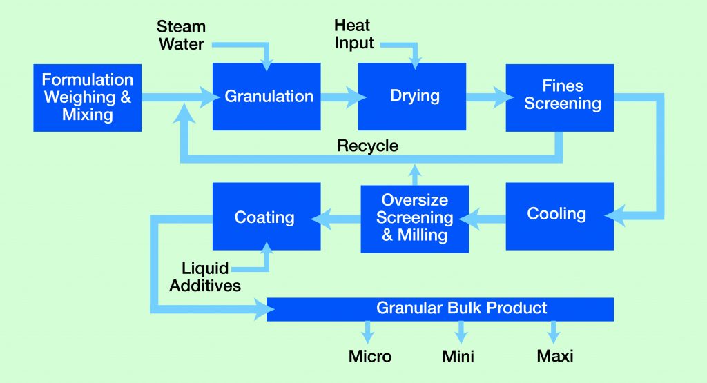 Making a compound fertiliser is a specialist operation and requires significant investment in machinery and experience. Here is a diagram showing the most modern plant in the UK where all Rigby Taylor fertilisers are produced.