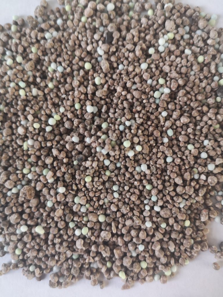 When making a compound fertiliser, ALL nutrients and all sources are in each granule. It is fairly easy to spot a compound fertiliser, as all granules will be the same colour, usually a shade of grey / brown.