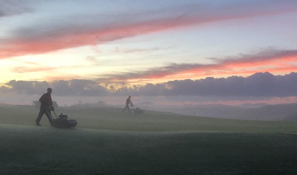 I have 15 greenkeepers including two mechanics who help out on the course. We have one gardener as well. We do a lot of hand cutting which takes a lot of time. We try to hand cut greens daily plus we hand cut tees. We have one of the biggest sites on the Open so 15 may sound a lot, but it really can be a push to get everything done that is required. Bunkers are raked daily by hand and with over 100 that is time consuming. During the drought of 2018 we lost a lot of grass so have been busy hand dressing any worn areas by hand as we wanted to be gentle on any drought areas. This has been time consuming but been very rewarding. All the staff have separate areas of the course that they specialise in. I encourage the team to come up with any ideas for making improvements for the course. By doing this I feel the team have ownership of the course thereby making it a team effort. I want them to be proud of the course as it’s all down to them how good the course is.
