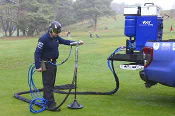“The GeoInjector offers greater depths of decompaction than anything else, while the lateral injection of drainage material ensures prolonged drainage below the surface. Furthermore, there is little disruption to surface and play. However, you do need a compressor.