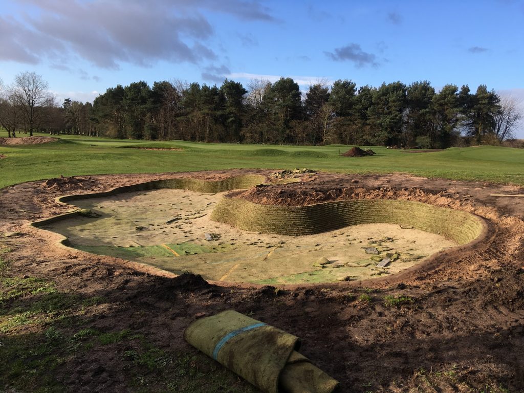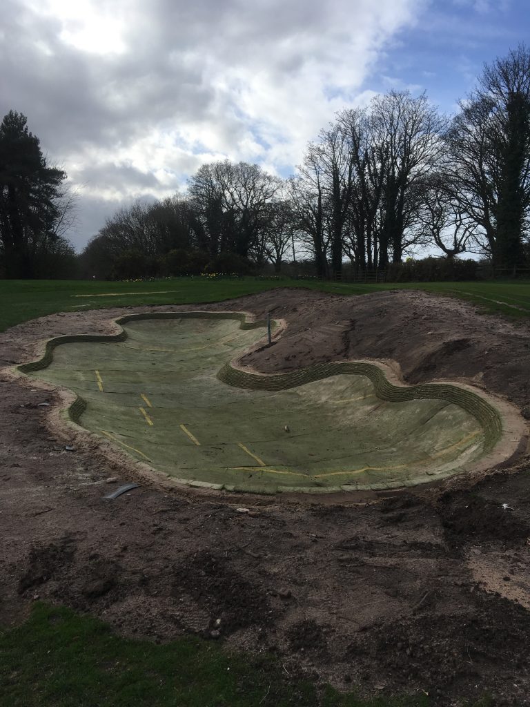 During the debates about the irrigation system we also highlighted that the bunkers needed to be replaced as they were tired and their faces were collapsing as the bunkers were heavily contaminated with clay and stones. In my recommendations I reminded them that I said in my interview that the bunkers needed replacing, and that I would replace them with EcoBunker as the faces will not degrade, and a liner would stop soil and stone migration.