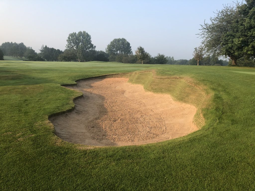 A replacement programme was devised to replace the single block valve greens irrigation with valves in head alongside the replacement of bunkers on individual holes. During the bunker design, we also incorporated drip line irrigation installation to stop the faces burning out.