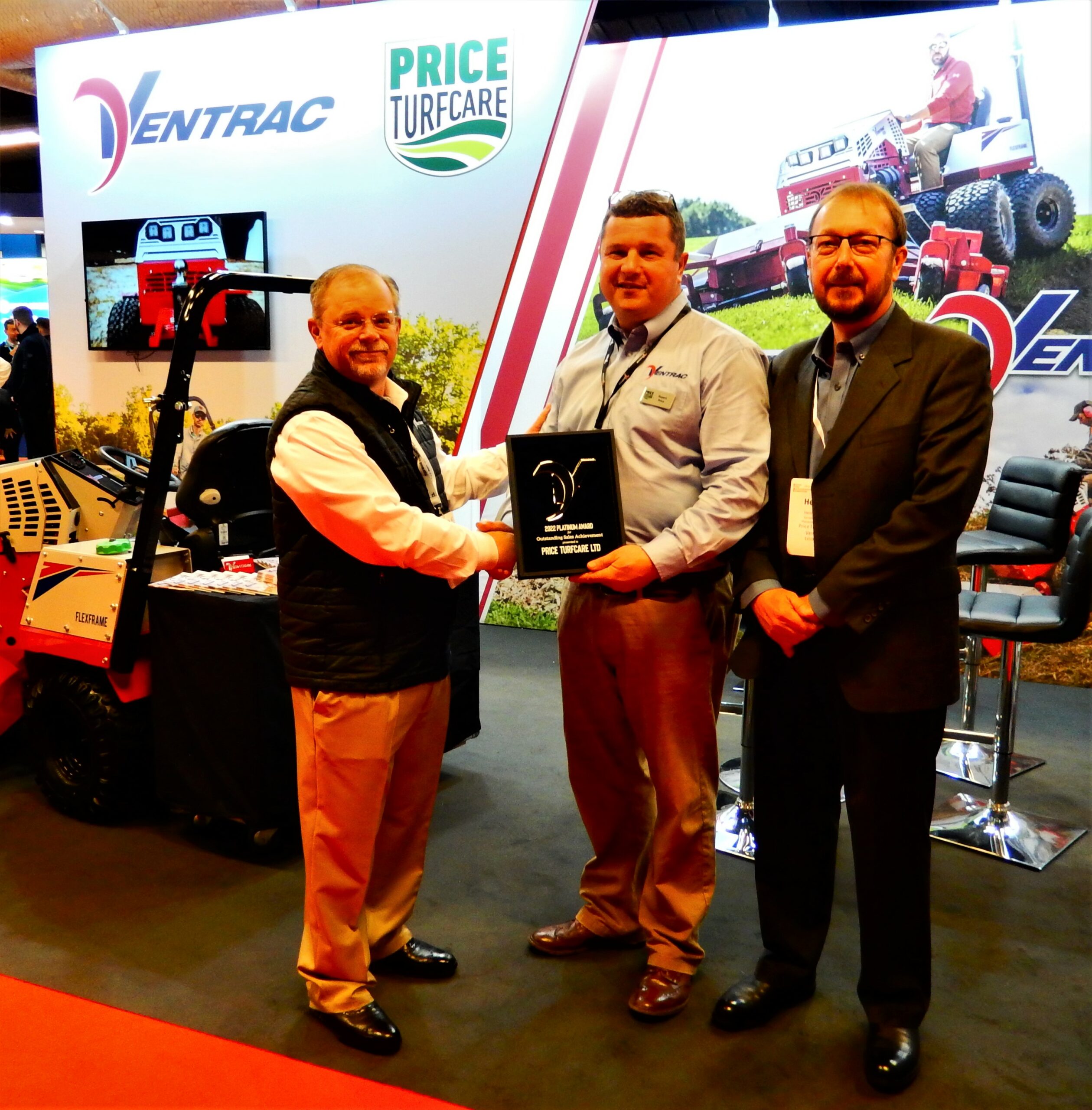 Price Turfcare, the UK and Ireland distributor of the Ventrac multi-implement, all-terrain compact tractor, was named European Distributor of the Year and received Ventrac’s Platinum Award for Sales Achievement at BTME.