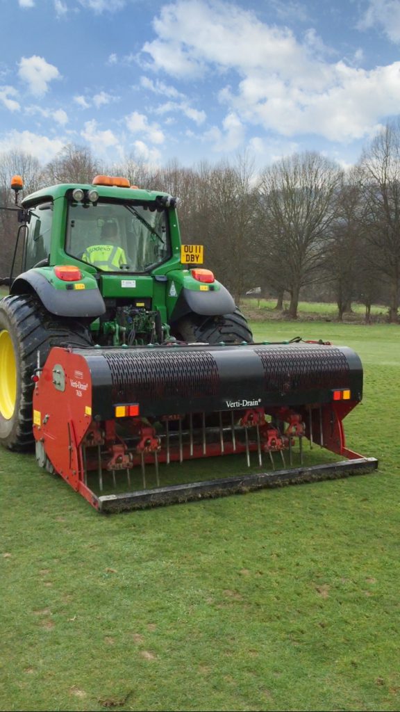Their Verti-Drain 7626 is now into its 5th season. “We chose this machine initially as it was a good match for our tractor and since then it’s proved to be a real workhorse. The weight of the unit means it penetrates the surface, rather than bouncing over it like some other machines do. Spring and autumn / winter are peak times for the Verti-Drain, though it’s used whenever conditions allow.” With the Verti-Drain 7626 taking care of the deep aeration work, the pair of Verti-Quake 2516’s work on compaction within the top 6 to 8 inches. “These come into their own when the ground is too firm or when the surface is wet, requiring lighter units to be used. The smaller, lighter Verti-Quake 2516 runs on a compact tractor, which gives us the flexibility when assessing customer requirements to choose the most effective machine to use.”