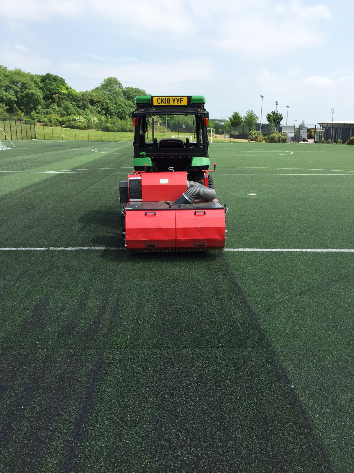 The Verti-Top conducts surface and deep-cleaning, utilising a rotary brush to lift the pile and extract up to the top 15mm of infill and foreign material. The infill is then sieved to remove dust and detritus before being returned and brushed into the surface leaving a clean, level and aesthetically pleasing finish.