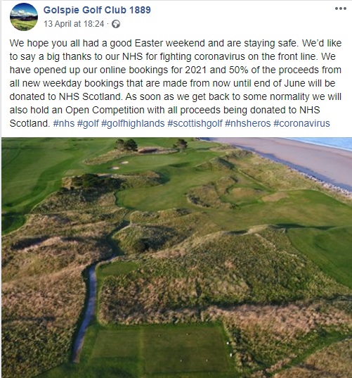 “When all this started, I picked up on Duddingston thinking about having an open competition later in the year to raise funds for the NHS,” said Alasdair MacDougall, Golspie’s treasurer. “I thought that was a great idea, but I also thought ‘what could we do that could happen a bit quicker and help us at the same time?’