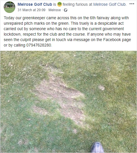 Melrose Golf Course’s greenkeeper has reported on Facebook that he found several unrepaired pitch marks on a green, as well as damage to the sixth fairway.