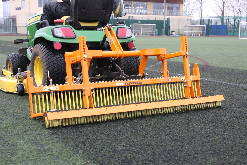 The common misconception is that synthetic surfaces are maintenance free. Just like natural turf surfaces, synthetic surfaces require maintenance as soon as they are constructed if they are to perform to the standard expected of them. Regular brushing along with periodic aggressive brushing and maintenance is required to ensure that the playing surfaces achieve their full life expectancy, and to help Lee with this task he chose to purchase the SISIS Flexicomb.
