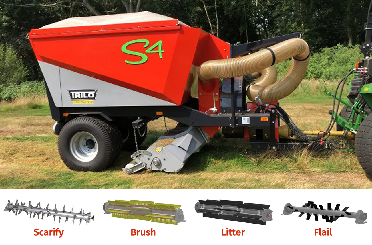 A Trilo S4 has proven its credentials as a multi-functional machine without compromise for the team at Richmond Golf Club. Purchased initially to assist with the mammoth task of collecting leaves from more than 3000 trees around the parkland course, the interchangeable heads and ability to flail cut and scarify has seen the S4 out and assisting with maintenance year-round.