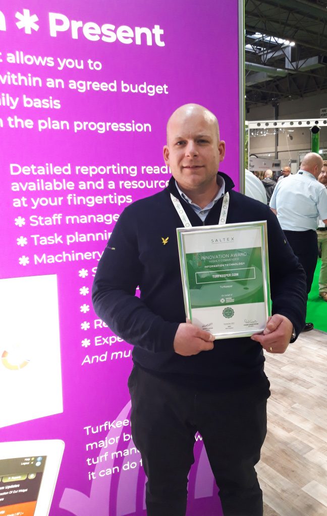 Kevin Scarce of TurfKeeper.com received the award in the ‘Information Technology’ category at this year’s SALTEX Innovation awards.