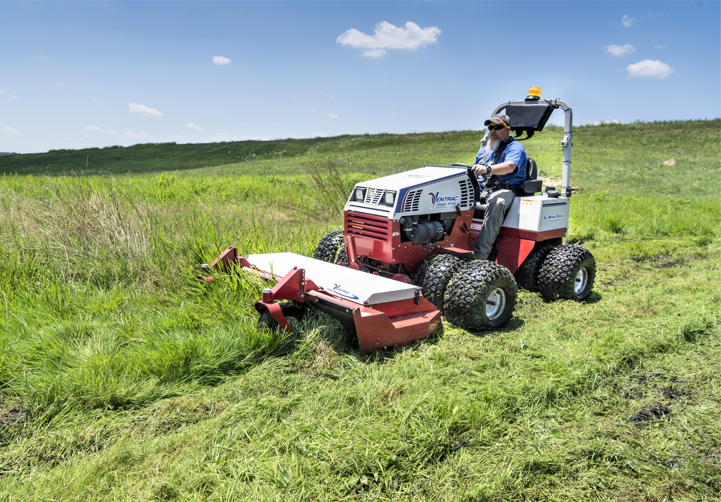“So, if it’s imperative that you need to get a job done, the 4500, with its light footprint can get onto wet areas causing minimal damage and disturbance, compared to a traditional ride-on mower or compact tractor.