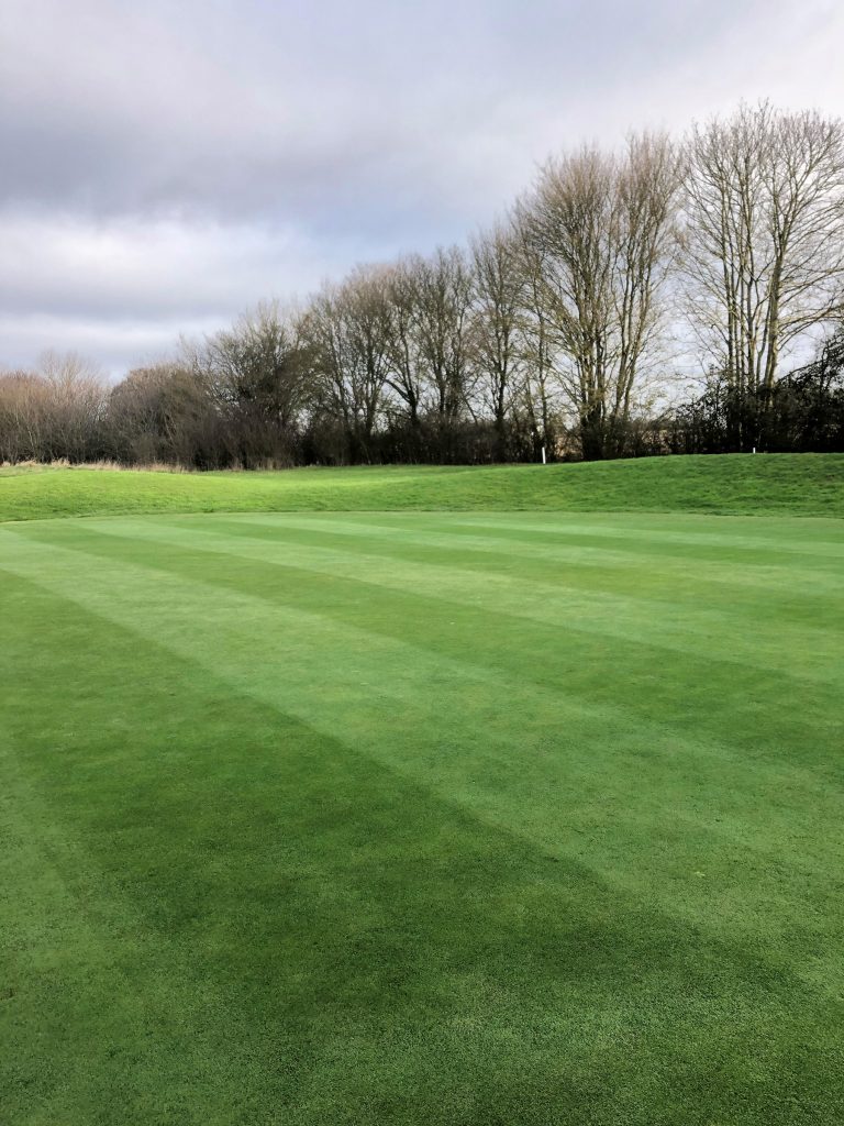 Nestled in a secluded spot on the Hertfordshire/Essex border, many of the greens at Manor of Groves are surrounded by trees, restricting both light and airflow to the surface. “It is no exaggeration to say that my predecessor and I had tried everything” explains Lee, who heads up a team of six greenkeepers. “We’ve hollow-cored, top-dressed, removed thatch and even installed drainage to try and solve the issue. Speaking with Peter Blackaby of Headland was a final roll of the dice to try and avoid the problems we’ve had for many years; with retention of water and the knock-on impact this has on overall playability and plant health.”