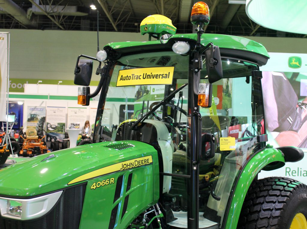 Using pioneering technology first introduced by John Deere on its agricultural tractors and other self-propelled equipment in 2001, the top of the range 4066R compact tractor can now be equipped with a StarFire satellite receiver and AutoTrac Universal automatic steering system. This is being made available on the company’s compact tractor range to help operators achieve higher levels of accuracy and input cost savings when working with implements such as amenity turf sprayers and spreaders.