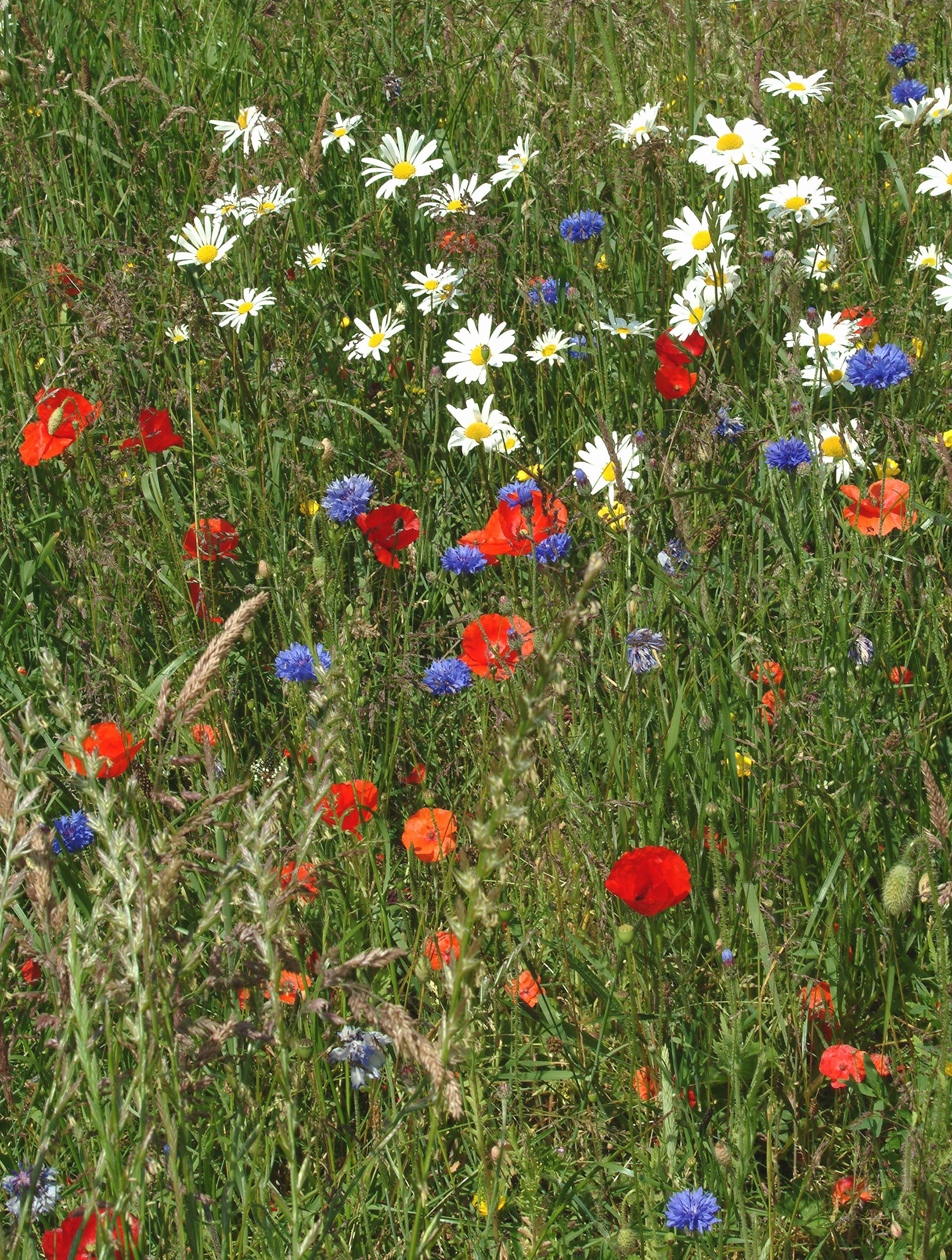 Unlike most traditional meadow mixtures, which typically contain 80 per cent grasses and 20 per cent wildflowers, Everyday Meadow contains a ratio of 90 per cent grasses to 10 per cent wildflowers: by increasing the grass content and selecting only annual species of wildflowers, Everyday Meadow is faster to establish.