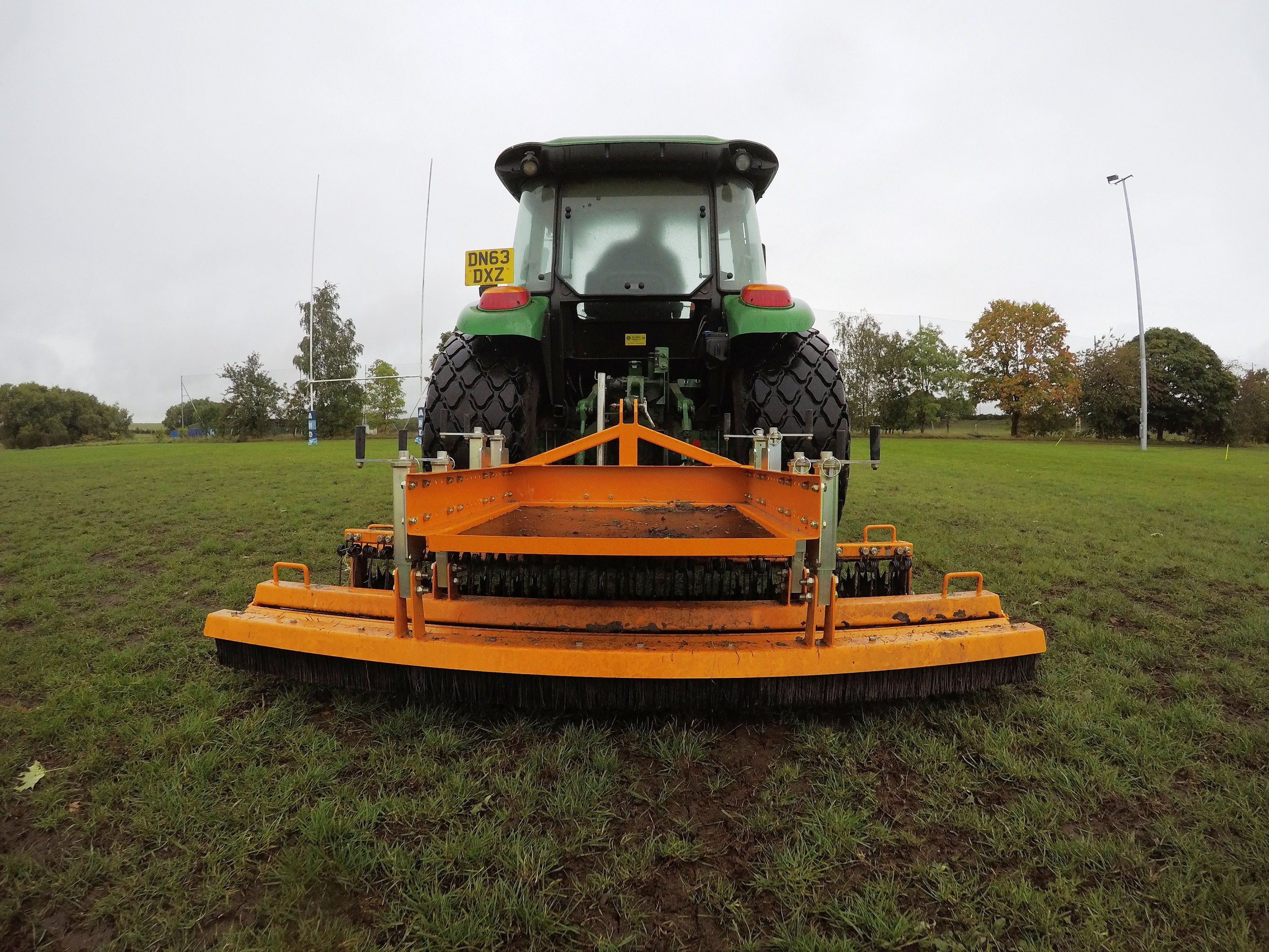 “We use it from October until March quite regularly on all of the pitches and at all times we have the four implements attached. I really like the spring tine rake which is great for standing grasses up to improve presentation and remove thatch; the slitter is a big help in relieving compaction which in turn helps absorb water, air and nutrients into the root zone; we use the straight brush to remove excess dew and then the roller is just what we want to level the bumps out and press the divots back into place. From a presentation point of view, it also give us that all important stripe.
