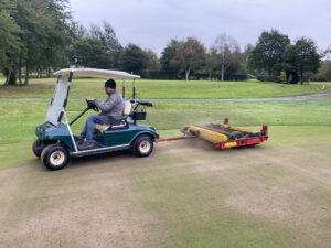 To keep pace with the requirement for more frequent topdressing, the club purchased a Rink DS800 delivered by Charlies Groundcare, in the spring of 2022. The DS800 features a 0.8m3 hopper capacity, variable spreading widths of between 2m and 12m, and spreading thicknesses of 0.5 to 15mm for optimal versatility and effectiveness. “Previously, we were using a fertiliser spinner which did the job but was very small and meant repeated trips backwards and forwards to the shed to collect material which was ¾ of a mile away from the furthest green! We looked at a couple of different models of disc spreader and opted for the Rink because of its size, reliability and the back-up support from the team at Charlies.